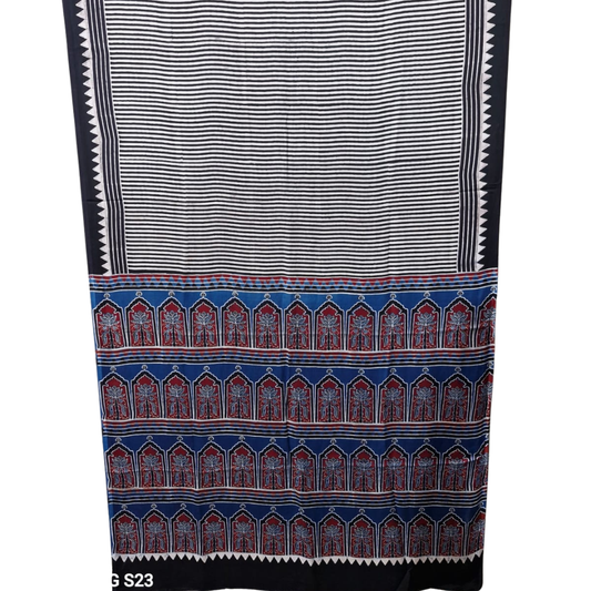 Sahaj celebrates the timeless artistry of Ajrakh block printing on luxurious dola silk. This saree...