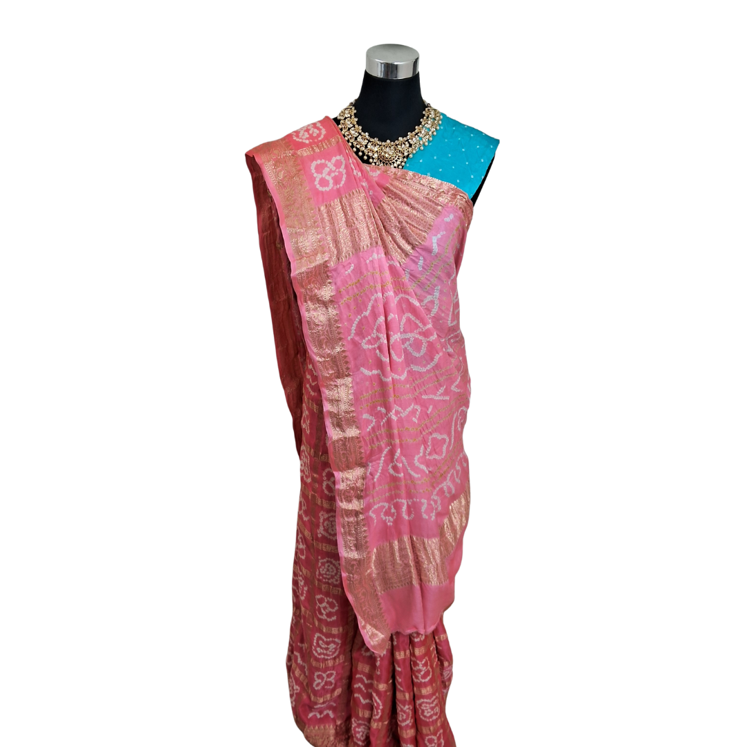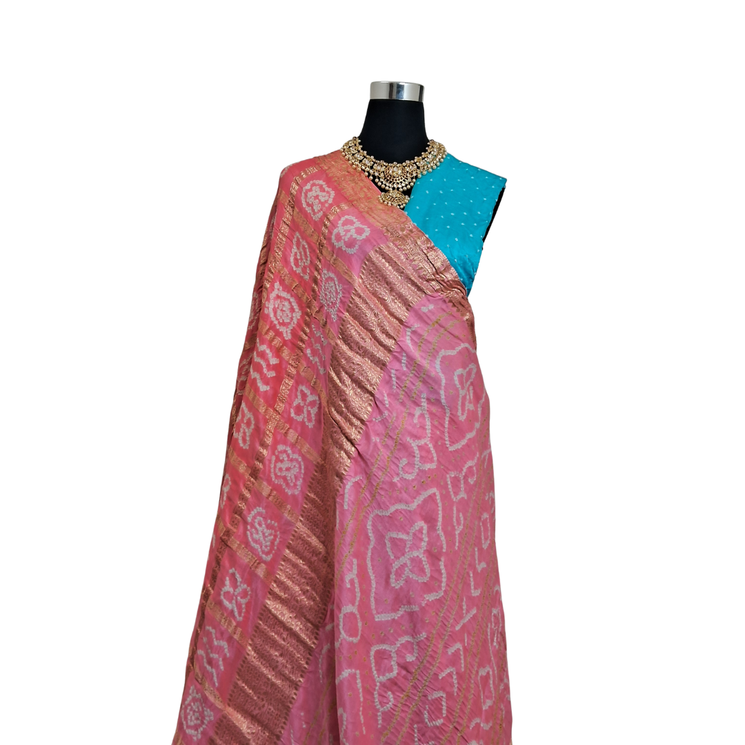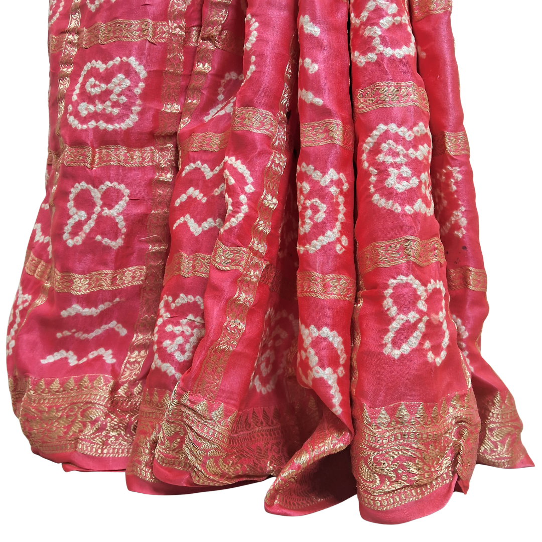 Gulnaar - Pink Shaded Gajji Silk Nakshi Bandhani Saree
