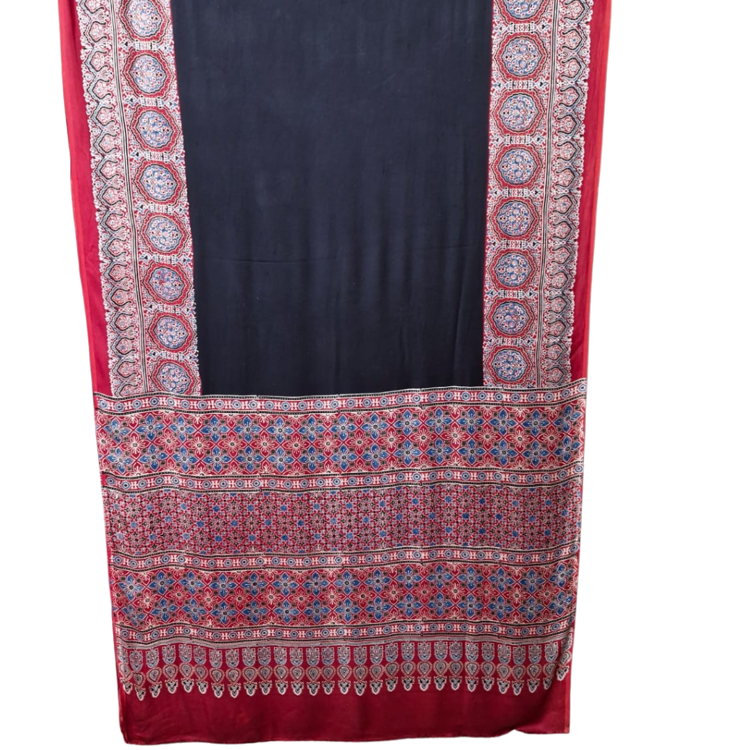 The breathable modal silk drapes gracefully while maintaining its shape, offering comfort without compromising on luxury. Each hand block print detail reflects traditional craftsmanship, making every piece distinctly unique. Whether you're attending a formal event or a religious occasion, this saree delivers refined sophistication with an artisanal touch that discerning wearers appreciate.