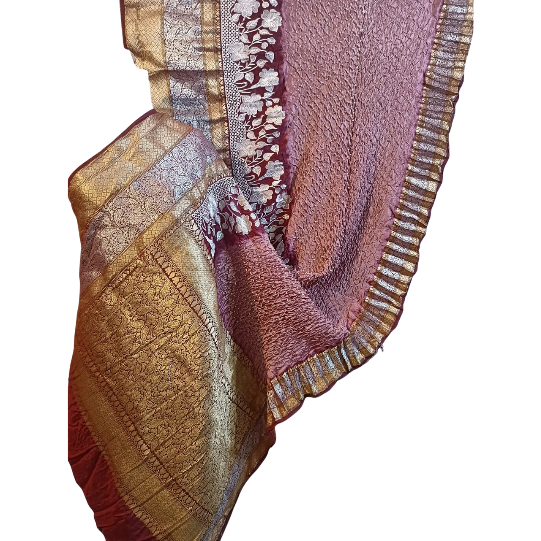 Saanjh - Pure Katan Silk Kanchi Lakhnavi Bandhani Saree